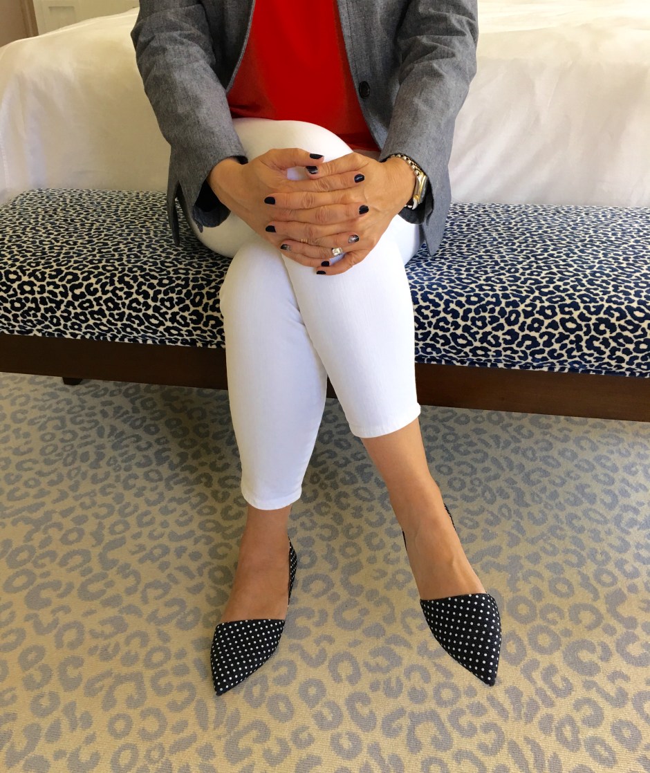 The sandals are on sale at J.Crew. I did not buy them right away and then they were sold out. I was thrilled to pick them up on sale last week. – Update they are sold out. Hereis another style that would go well with this look.
