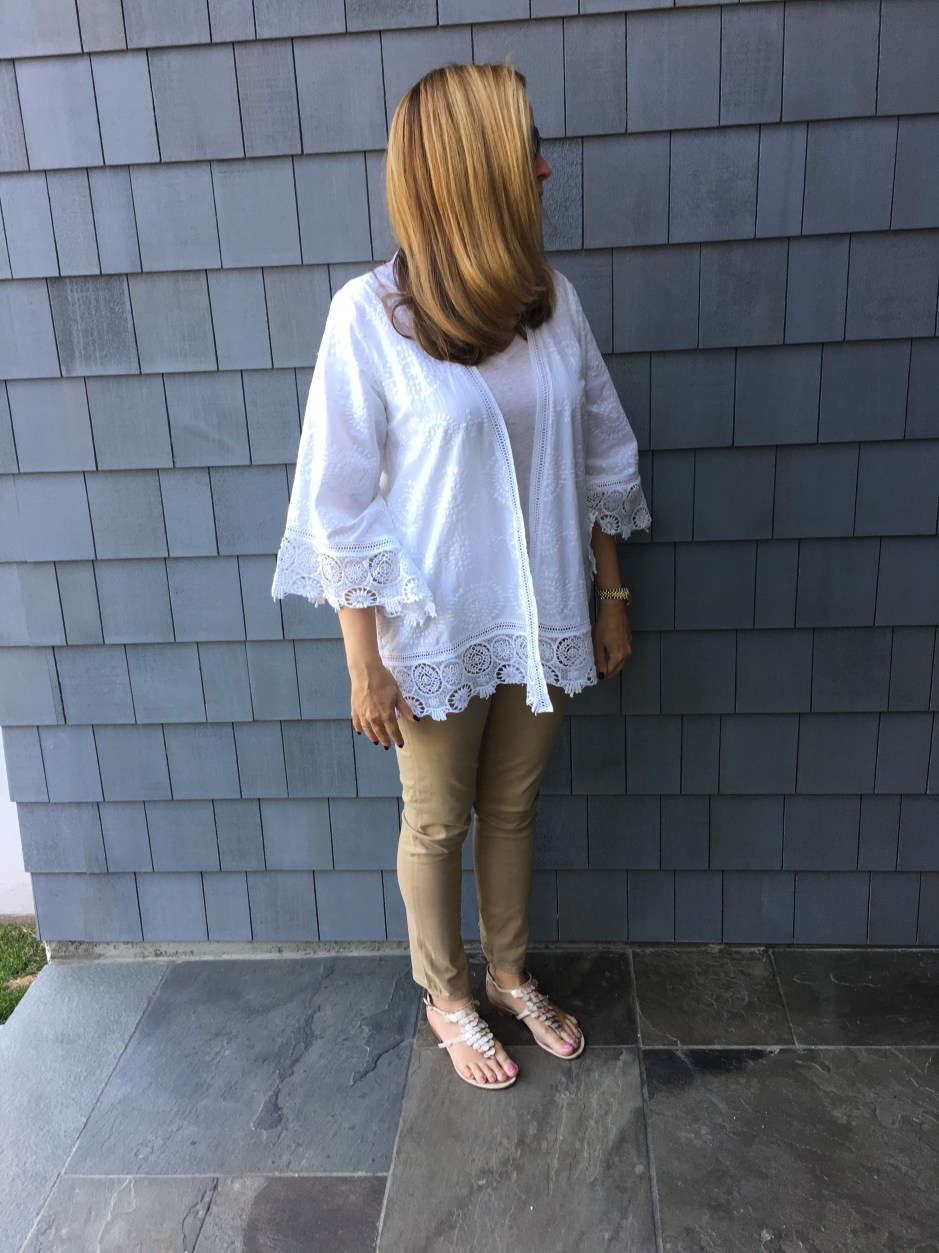 This Calypso jacket just screams summer, beach and vacation to me. It is light and airy and I love the details. It is part of their new summer roll out. I styled it with my favorite AG Jeans in Nubuck and some sandals from a couple of years ago (but I have linked a similar style). It is a great piece that plan to wear all summer long.