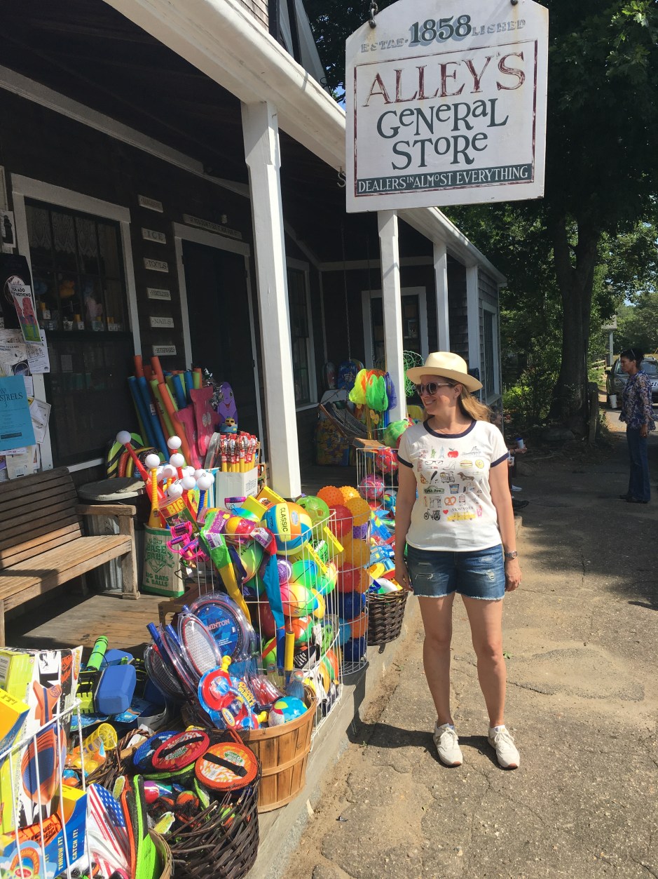 Right before I left for my vacation J. Crew came out with these “destination” art t-shirts. I had to have the New York version. I love the navy trim on the sleeves and neck and the graphics are just so quintessentially New York. I styled it with cut-off denim shorts, panama hat, sunglasses and one of my favorite pairs of New Balance for J. Crew kicks. The color is salt and gold and they go with everything. I love the gold. It is the perfect polish for a pair of white kicks. We had a leisurely afternoon at Alley’s General Store. My son could spend hours there. They have an unbelievable selection of toys, housewares, toiletries, supplies, you name it. It is a true general store. It is the oldest operating business on Martha’s Vineyard and was established in 1858. Then we headed to Oak Bluffs for a casual dinner and ice cream.