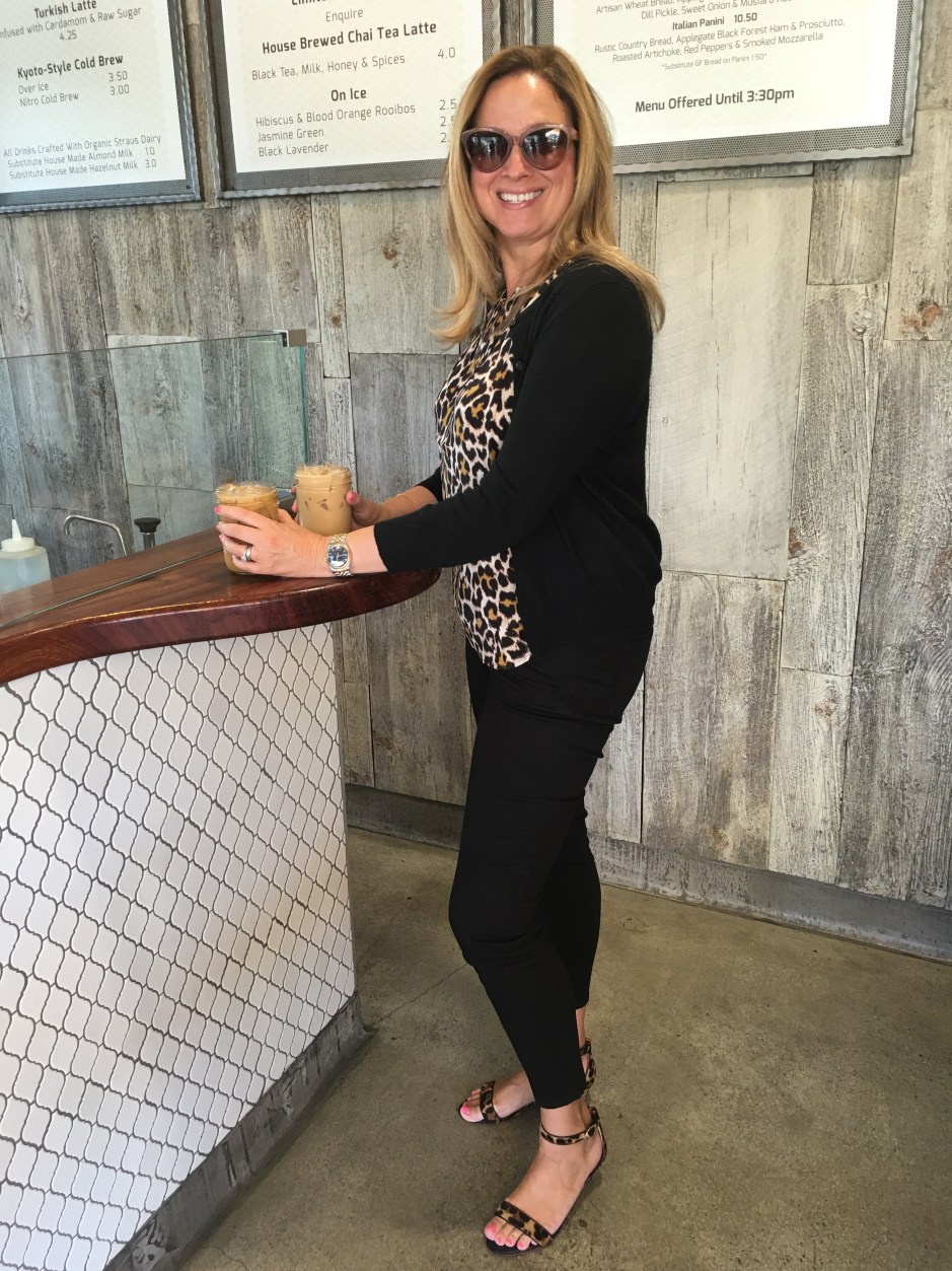 Our end of the Summer mini-vacation included an amazing meal at Plow and Angel at the San Ysidro Ranch. It is just so beautiful there. I wore a J. Crew dress that I featured in Stripes and Paisley on the Vineyard. This time swapping the pops of pink for my favorite leopard print. The dress is so easy to wear and is a great neutral shirting stripe that can be styled so many ways.